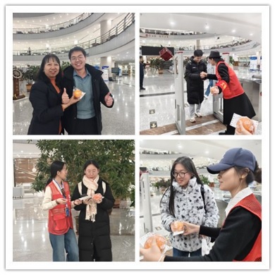 研途漫漫,温暖相伴。12月19日,图书馆闭馆时分,悠扬的《一路生花》在馆内缓缓流淌,温柔漫过备考时光的沉静。图书馆马春华老师带领文明督导队的同学们,在学生出馆出口处静静等候,手捧饱含期许的橙子,为每一位结束当日备考、即将奔赴考场的考研学子送上专属祝福,用暖心举措为逐梦之路护航。
